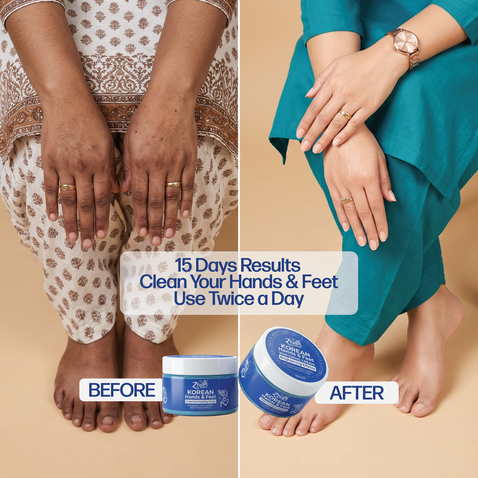 اپنی قدرتی چمک کو ابھاریں Zeesh Korean ہینڈز اینڈ فیٹ وائٹننگ کریم کے ساتھ
